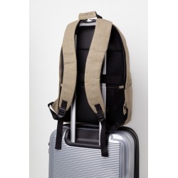 Voděodolný RPET batoh se 3 hlavními přihrádkami na zip, 2 předními kapsami na zip, boční kapsou na zip a skrytou kapsou proti krádeži. S polstrovanými přihrádkami na notebook (17") a botami, polstrovanými zády a ramenními popruhy. S popruhem na vozík a vestavěným USB připojením pro powerbanky. Polyester 300D RPET s výrazným štítkem RPET.
