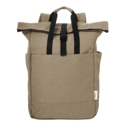 Recyklovaný plátěný batoh s hlavní přihrádkou na zip, polstrovanou přihrádkou na notebook (15"), 2 předními kapsami na zip, bočními kapsami, popruhem na kolečkách, polstrovanými zády a ramenními popruhy. 70% recyklované bavlny a 30% RPET polyesteru. S výrazným štítkem recyklované bavlny.