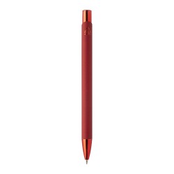 Kuličkové pero z recyklovaného hliníku s lesklým kovovým povrchem. S modrou náplní.