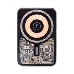 Power banka z recyklovaného hliníku s vestavěnou magnetickou bezdrátovou rychlonabíječkou (15 W) a 5000 mAh baterií. Se vstupem USB-C a portem pro nabíječku. Obsahuje samolepicí kovový kroužek pro použití magnetické funkce na jakémkoli bezdrátovém nabíjecím zařízení. Kompatibilní s iPhone® 12 nebo novějším. USB nabíjecí kabel součástí.