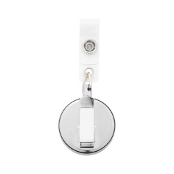 Kulatý přívěsek na klíče z recyklované PU kůže s kovovým kroužkem a nerezovou destičkou s logem a pogumovanou úpravou. Se speciálním povrchem pro zrcadlové laserové gravírování.