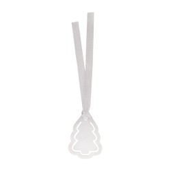 Vánoční ozdoba z březové překližky, dodáváno s oddělenou červenou stužkou.